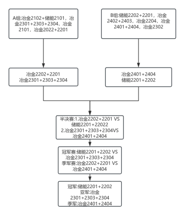 经过激烈的角逐后,2025年4月22日,在巨乳a片 篮球场14号、15号场地,终于迎来激动人心的决赛。冶金2301+2303+2304联队、冶金2401+2404联队、储能2201+2202联队、冶金2201+2202联队成功杀入决赛。