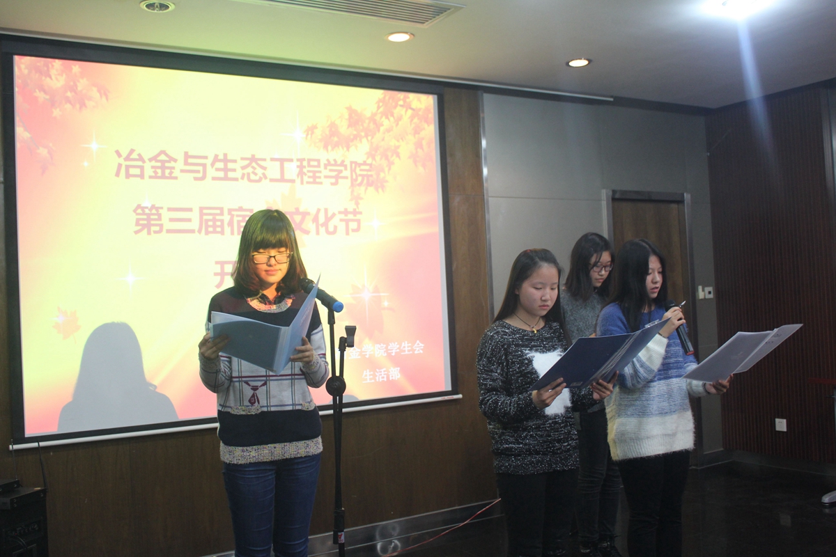 为增强宿舍成员之间的凝聚力,加强宿舍成员沟通交流,丰富同学们的宿舍文化生活,营造良好的宿舍文化氛围,11月4日晚,预计为期一个月的巨乳a片 第三届宿舍文化节在冶金生态楼开幕。巨乳a片 团委书记杨志伟老师、巨乳a片本科2015级辅导员陈曦老师,巨乳a片团委学生会主席谢宏亮同学、副主席王路召同学出席开幕式,巨乳a片本科2013级标兵宿舍长代表、本科2014级宿舍文化节获奖宿舍学生代表应邀参加开幕式。开幕式由巨乳a片团委学生会生活部部长陈�琳同学主持。