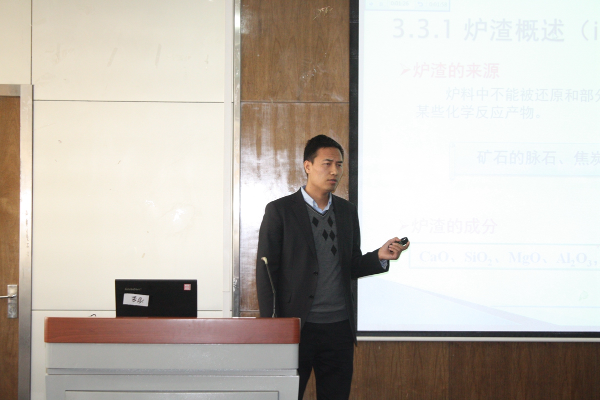 刘征建老师首先帮助同学们理解铁矿粉造块的方式及作用,深刻理解铁酸钙液相在烧结过程中的作用及特性转变,重点帮助同学掌握低温烧结技术的应用及优势。同时,刘征建老师在课堂教学中,注重理论应用的展示,帮助学生深刻理解并开阔了学生视野。王娜老师讲述了密度泛函理论基础。她从密度泛函理论的基本原理,引出Kohn-Sham方程基本思想,继而为同学们讲述了Kohn-Sham方程的推导过程。姜敏老师从钢铁材料在服役、加工中的破坏开始,讲授社会发展过程中钢铁材料破坏造成经济损失、公共安全问题,引入非金属夹杂物这一名词概念。并引入列车脱轨的实例为现场评委及同学们更为形象的展示了非金属夹杂物的重要特性。