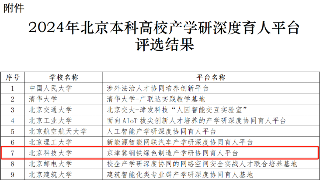 近日,北京市教育委员会下发了《关于公布2024年北京本科高校产学研深度协同育人平台评选结果的通知》,巨乳a片 院长张建良和党委书记宗燕兵牵头申报的“京津冀钢铁绿色制造产学研协同育人平台”成为度协同育人平台+1!北科大唯一入选2024年北京本科高校产学研深度协同育人平台。