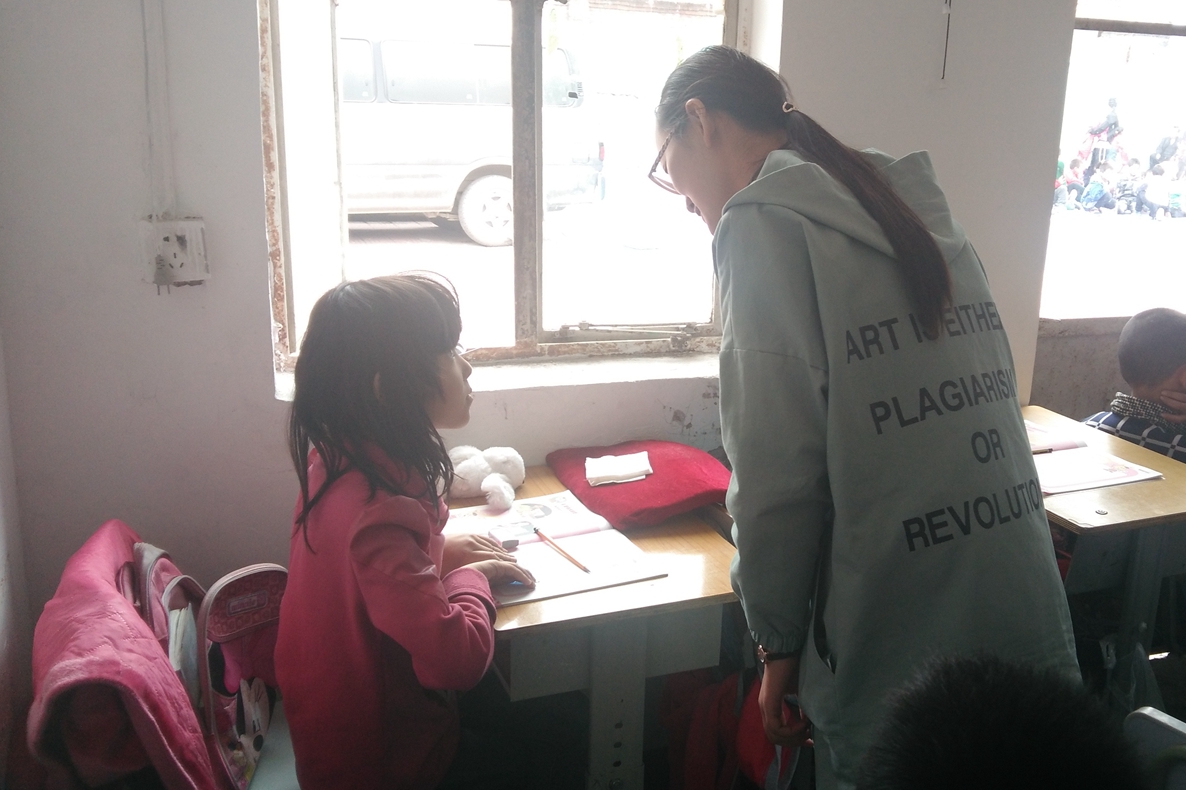 此次是在育华小学的第二次任课。虽然上次授课时间仅仅40分钟,讲课内容也只有简单的两页纸,但小朋友记住了“老师们”,他们的反应让同学们欣慰,让大家明白支教不仅仅是授课,更是朋友般的陪伴。