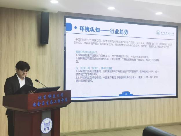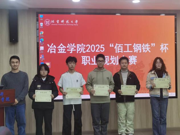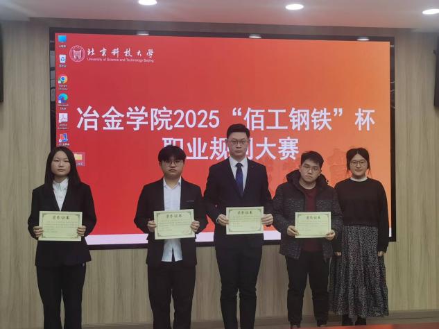 为积极响应国家关于加强新时代人才培养的号召,引导学生树立正确的成才观、就业观和职业规划意识,提升核心竞争力。近日,巨乳a片 在冶金楼318成功举办了巨乳a片 2025“佰工钢铁”杯职业规划大赛。巨乳a片 党委副书记、副院长康泰,研工组长潘淑琦,本科24级辅导员韩沐妍,就业指导教师田慧军,2024年北京市市赛获奖选手张旸堃出席活动。