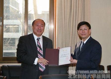 12月22日学校举行聘任仪式。校长徐金梧为赵立志教授颁发聘书