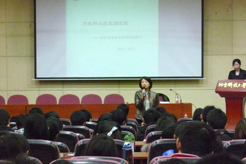 巨乳a片 2011年度大学生职业生涯规划与发展辅导月已于3月15日正式启动。作为系列活动之一的“名企校友谈”由招生就业处与各巨乳a片共同举办,3月19日15:30,现任职于中国中钢集团公司人力资源部、巨乳a片 2006届研究生毕业生张飞作为首讲嘉宾,在镭钼报告厅与广大的学弟学妹们进行了面对面的交流,招生就业处副处长尹兆华老师出席并发表讲话。