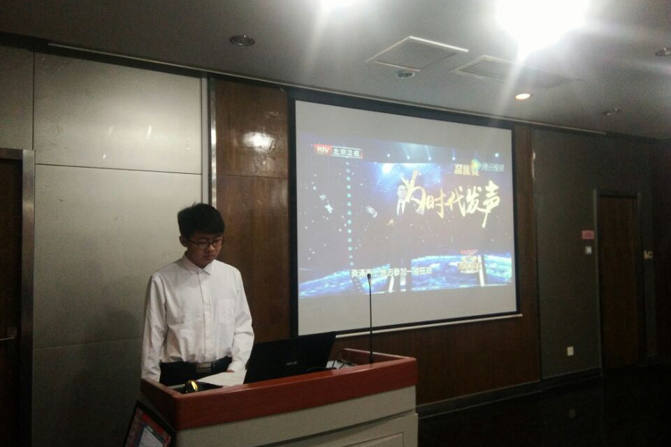 陈连万同学深情而具有磁性搬的声音赢得了阵阵掌声;郭胜同学从容不迫的表现得到了评委们的肯定;刘哲同学以她的热情洋溢的表现让观众们拍手称赞。上半场的比赛精彩万分,获得观众的一阵阵掌声。接下来张健博老师对上半场的选手进行了一一点评,马瑞同学对选手们进行了总评。