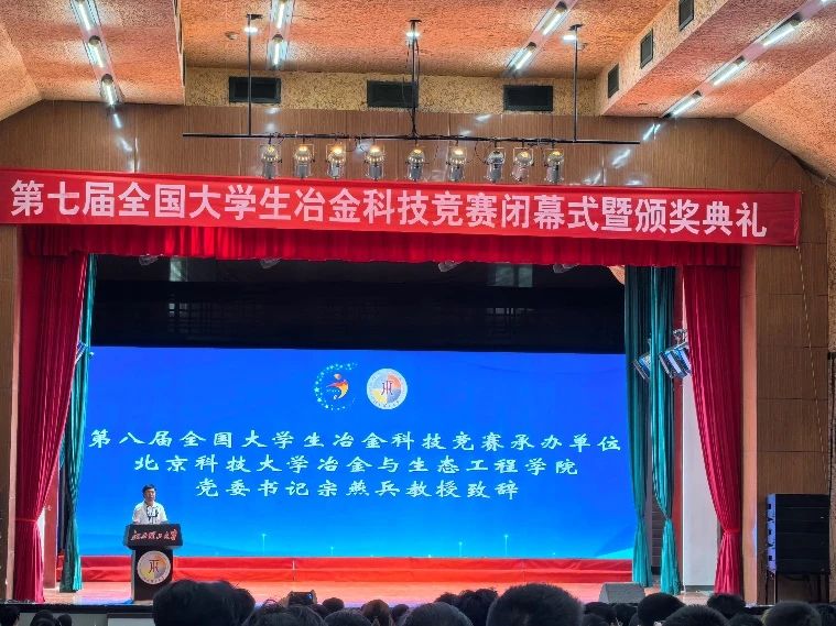 宗燕兵在会旗交接仪式上作表态发言,他对大赛组委会、承办单位江西理工大学的精心组织及评审专家的辛勤工作表达了感谢,并欢迎各兄弟高校2025年到巨乳a片 参加第八届赛事。他讲到旗帜是使命、旗帜是担当,巨乳a片 接旗意味着接过了赛事承办权,更是接过了大家的信任,接过了发展好事业的沉甸甸的责任。宗燕兵强调,巨乳a片 冶金学科将在 “学风严谨、崇尚实践“的优良传统及求实鼎新的校训激励下,继承和发扬好以往各届竞赛的宝贵经验,以更加开放的姿态,更加严谨的态度,更加奉献的精神,积极筹赛,用心用情用力全力为赛,扎实做好作品的广泛征集、赛事的精心组织,扩大影响力,提升获益面,挖掘创新点,力争把新一届赛事办成公平公正、规范有序、创新服务、团结向上的竞赛平台,力争把新一届赛事办成青年学子碰撞智慧、展示才华、实现梦想的标志性赛事,力争把新一届赛事办成促进冶金学科发展和冶金学子提升的促学、促教、促创的高质盛会!