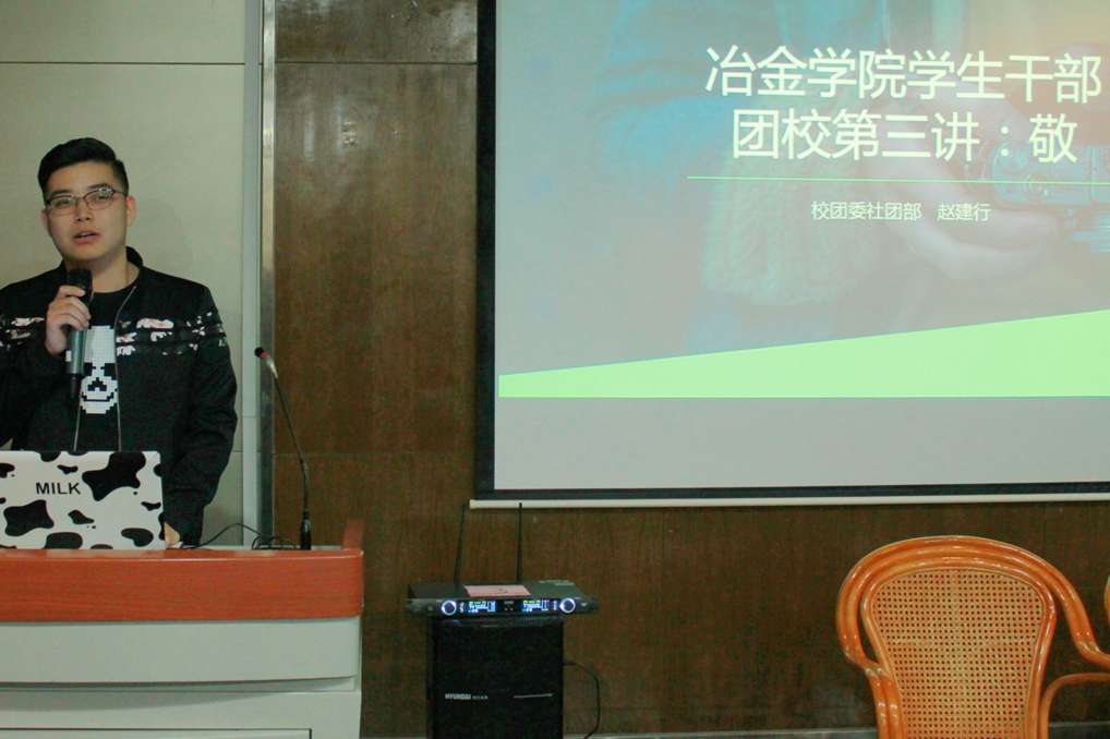 3月31日晚,巨乳a片 团学工作第三讲――学生干部成长论坛在冶金楼青钢报告厅顺利开展。校会学生干部服务中心副主席李晓彤同学,校学生会副主席刘玉博同学,校团委社团部副部长赵建行同学,校团委学术科技部副部长栾益锋同学出席了此次活动,巨乳a片 学生会主席邓雨平同学主持了本次活动。