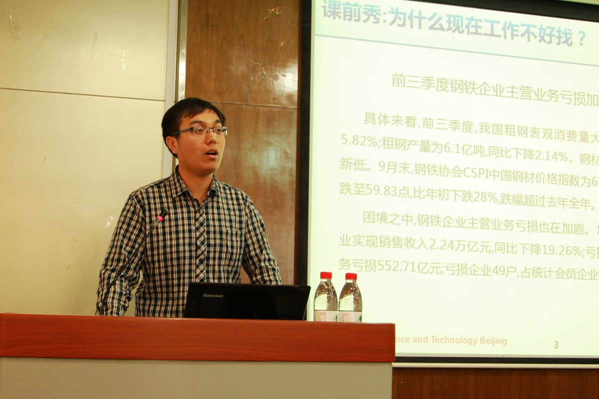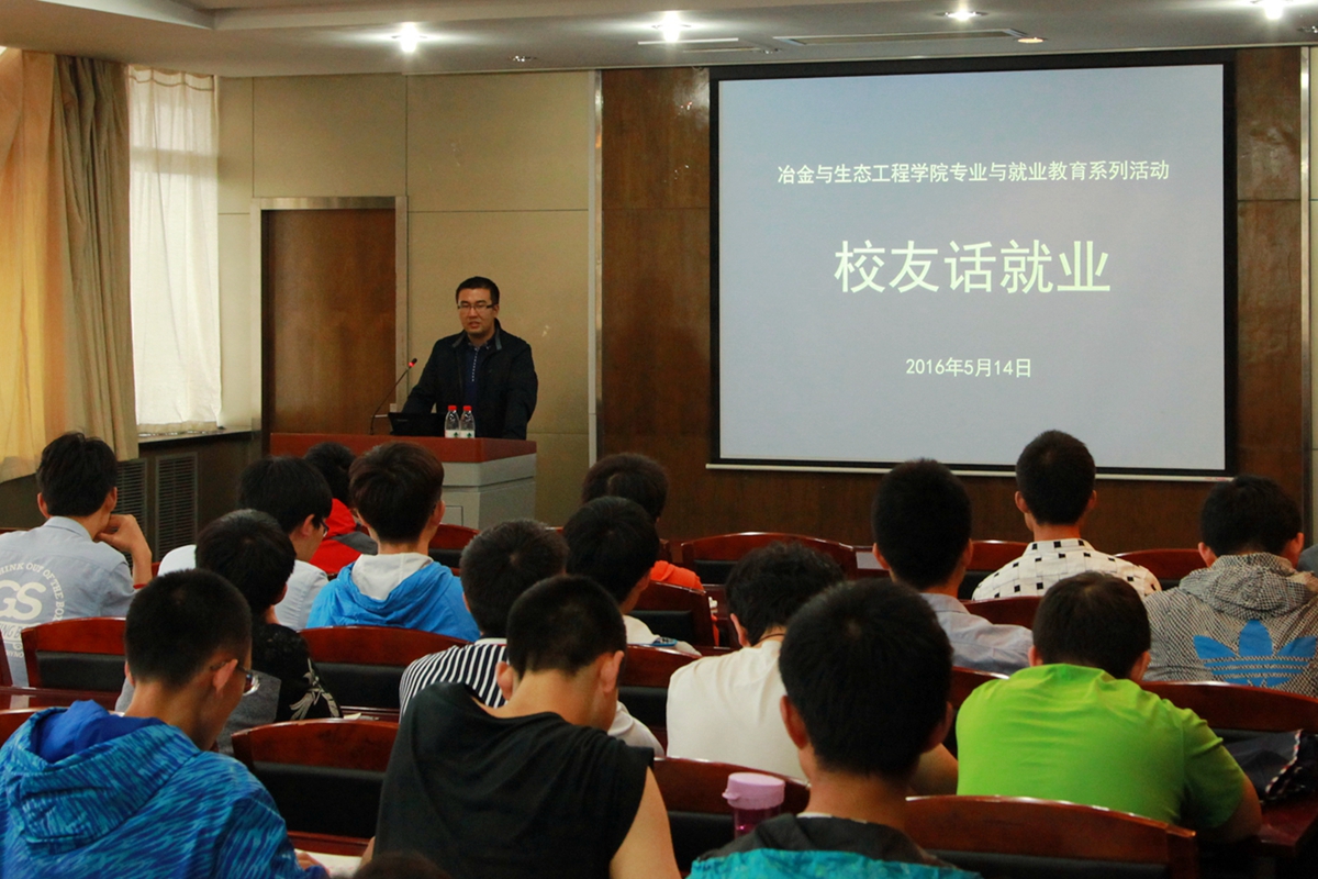 张瑞先生是我校冶金工程专业2015届硕士毕业生。在校期间,张瑞学习科研成绩优异,综合素质突出,曾担任巨乳a片研究生会主席,在毕业应聘中获得多个名企工作机会。张瑞先生先后供职于中铁物资集团、中铁十八局集团国际公司,立足钢铁冶金专业,积极拓展职业发展路径。“如何找到一份称心的工作?”张瑞先生首先结合自身应聘经历,强调了明确自身定位、积极把握机会的重要性,指导同学们增强对自身的了解,努力提升个人的应聘能力。张瑞先生以中信泰富、宝钢集团等为案例,介绍了钢铁相关行业企业生产经营的发展趋势,鼓励同学们增强行业自信、专业自信。