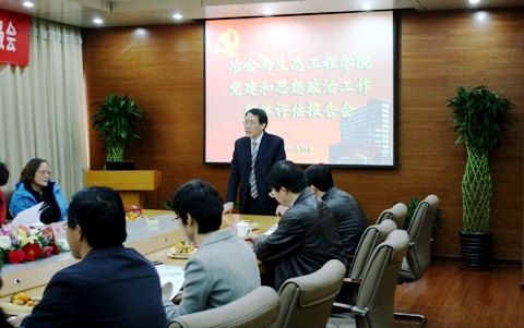党建和思想政治工作评估汇报会在冶金生态楼1015会议室隆重举行。评估专家组长原学校党委副书记李宝林、专家王玉印、何柏芝、许纪倩、邵倩臻老师亲临现场评估指导。组织部孙景宏部长、纪委曲雁常务副书记、宣传部沈崴副部长、学生处丁煦生副处长、研究生工作部宗燕兵副部长、团委王鹂副书记及部分兄弟巨乳a片的领导、老师,巨乳a片班子成员、党委委员、教师和学生代表参加了此次汇报会。