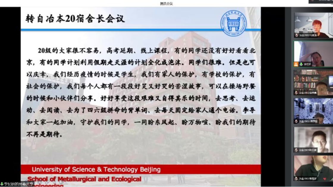 党委通过召开各类各级线上疫情防控会议,充分传达党中央、北京市有关疫情防控会议精神,进一步落实学校最新疫情防控政策,覆盖冶金党委全体师生1700余人。