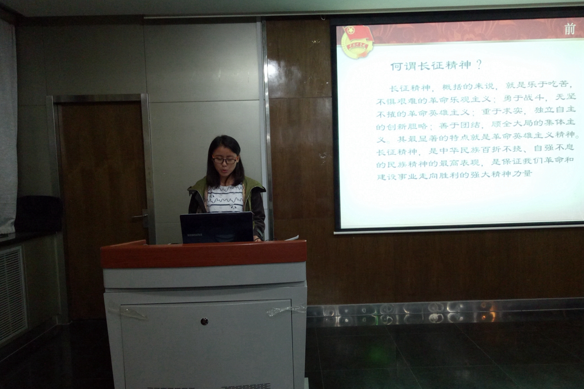 李琳琳同学从“学习长征精神”的角度出发,她首先向大家解释了何为长征精神,让大家开始便对长征精神有了更深刻的印象,接下来她从长征精神的原因、长征精神的内容以及如何学习长征精神详细进行了讲解。同学们也仔细聆听,认真记录。
