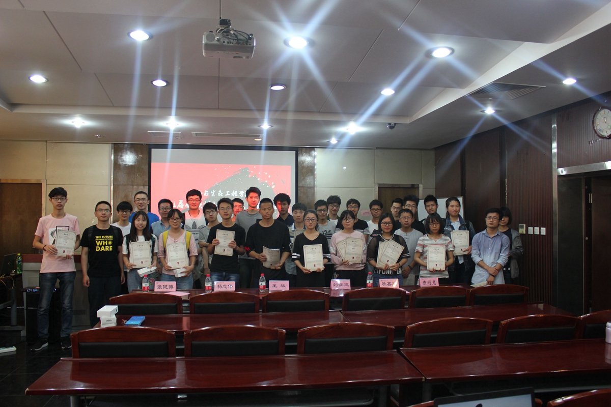 颁奖典礼伊始,主持人介绍了今年钢模大赛的概况并公布了获得本届一等奖、二等奖、三等奖以及优秀奖的团队名单。王斌老师、刘征建老师、杨志伟老师分别为为获得一、二、三等奖的团队颁发荣誉证书及奖品。获得一等奖的团队分别为陈柯霏、庞雪鹭、朱莉杰团队;二等奖团队分别为:李洋、吴小雷、谢永节、王敏⼒、王春阳团队;三等奖团队分别为:储万熠、陈恺、祝⼦健、吴霞、符志谋、李海洋、尹昱鳗团队;获得优秀奖的团队分别为:刘英聪、邬浩天、周敏、时婧芸、刘勋、罗卓尔、杨⽂⼴、吴松杰、连雪婷、肖斌、江暘暘、周⽂勃、胡⼦星、亢少华、王舜铎团队。