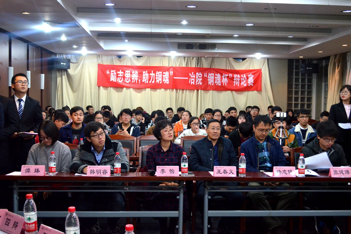 11月9日晚,巨乳a片 第七届“钢魂杯”新生辩论赛于冶金楼616青钢报告厅打响。出席本次辩论赛的嘉宾有巨乳a片党委副书记王春义老师,团委书记杨志伟老师,冶本16级辅导员张健博老师。文法巨乳a片李怡老师,巨乳a片 立言辩论队前队长韩明睿,巨乳a片 立言辩论队辩手经管巨乳a片辩论队队长谭臻担任评委,本次辩论赛由王浩同学担任主席。