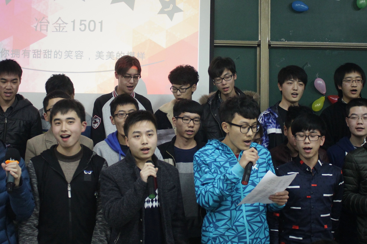 此外,冶金1503班两位阳光的大男孩为女神献上动听的歌曲《YOUNG》、冶金1504班全体男生带来歌曲串烧《上帝是个女孩》,并邀请女生一起完成合唱;冶金1505班六位帅小伙带来歌曲《爱》表达了对女生的祝福、一首《同桌的你》更让冶金1506班获得阵阵掌声,台下观众纷纷打起灯光,现场气氛极为活跃。