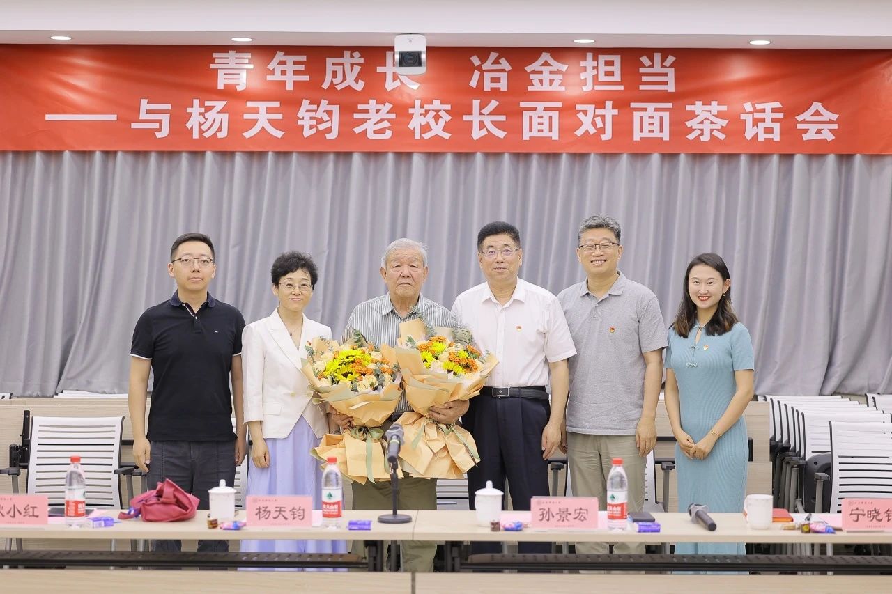 在中国共产党103周年华诞之际,7月1日上午,“迎七一:青年成长 冶金担当——与杨天钧老校长面对面茶话会”在冶金楼616报告厅举行。茶话会邀请巨乳a片 原校长杨天钧与巨乳a片 、冶金全重、碳中和研究院、卓越工程师巨乳a片、人工智能研究院等20余名青年师生代表共聚一堂,共同赏阅杨天钧老校长在巨乳a片 校报上发表的文章《青葱岁月,钢铁摇篮》,追忆往昔岁月,共话事业发展。校党委副书记孙景宏、科技史与文化遗产研究院党委书记耿小红、管庄校区党委书记宁晓钧、宣传部副部长薛浪出席活动。巨乳a片 党委书记宗燕兵主持活动。