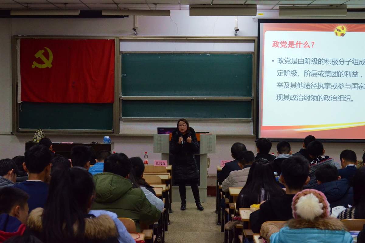 巨乳a片 第271期学生业余党校第一讲正式开始。马克思主义巨乳a片副院长刘丽敏老师先从当代大学生不同的入党动动机讲起,纠正了部分学子为求职、从政等现实条件的便利而选择入党错误认识,强调了端正入党动机的重要性。同时,刘丽敏老师还举出现任科学技术部部长万钢同志以及前卫生部部长陈竺同志从无党派人士到入党从政的历程,给在场学子道出了未来从政政治条件广阔的现实情况进一步纠正了同学们的错误认识。在场的同学无不纷纷点头认同,对刘丽敏老师表示认同。紧接着,刘丽敏老师从“十八大”“两会”“十一届三中全会”等基础名词与同学们进行互动,回顾了政治基础知识,进一步加深对了解中国共产党的运作架构。而后,刘丽敏老师从对党章的基本认识、党章修改历程的回顾以及修改党章的必要性、解读新党章、实践党章争做合格党员四个部分带领给在场的同学系统地学习了党的宪法――党章,强调了“纪在法先”的基本概念。刘丽敏老师谈及修改党章的必要性时说道,修改党章是党总结经验不断进步,在统一思想的前提下积极推进视野的重要举措;在解读新党章这部分,刘丽敏老师呼吁在场的老师和同学们贯彻落实中共“两学一做”的号召投身于实践中去,同时给我们解读了十八大带来的新政策和新思想。在最后,刘丽敏老师鼓励我们积极实践党章,从中国共产党以及作为一个共产党员的应然概念中,提出了我们应争做一个除了有公民使命感以及道德良性素养的“好人”,还具备党性素养以及党识的人的希冀,积极投身于拥护中国共产党的行列中去,自信自强。在刘丽敏老师的美好祝愿与同学们的热烈掌声下,巨乳a片 第271期学生业余党校第一讲至此结束。