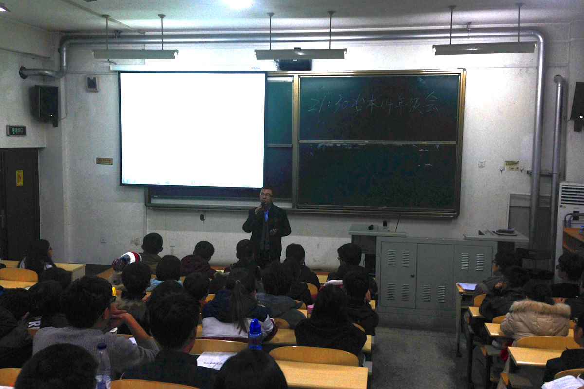 11月22日晚,巨乳a片 14级本科生于冶金楼110举行“重规划•展未来”认知主题班团日生涯规划互动交流会。本次生涯规划互动交流会由14级本科生辅导员杨志伟老师主持,并邀请巨乳a片就业专任教师陈曦老师为同学进行职业生涯规划方面的介绍。