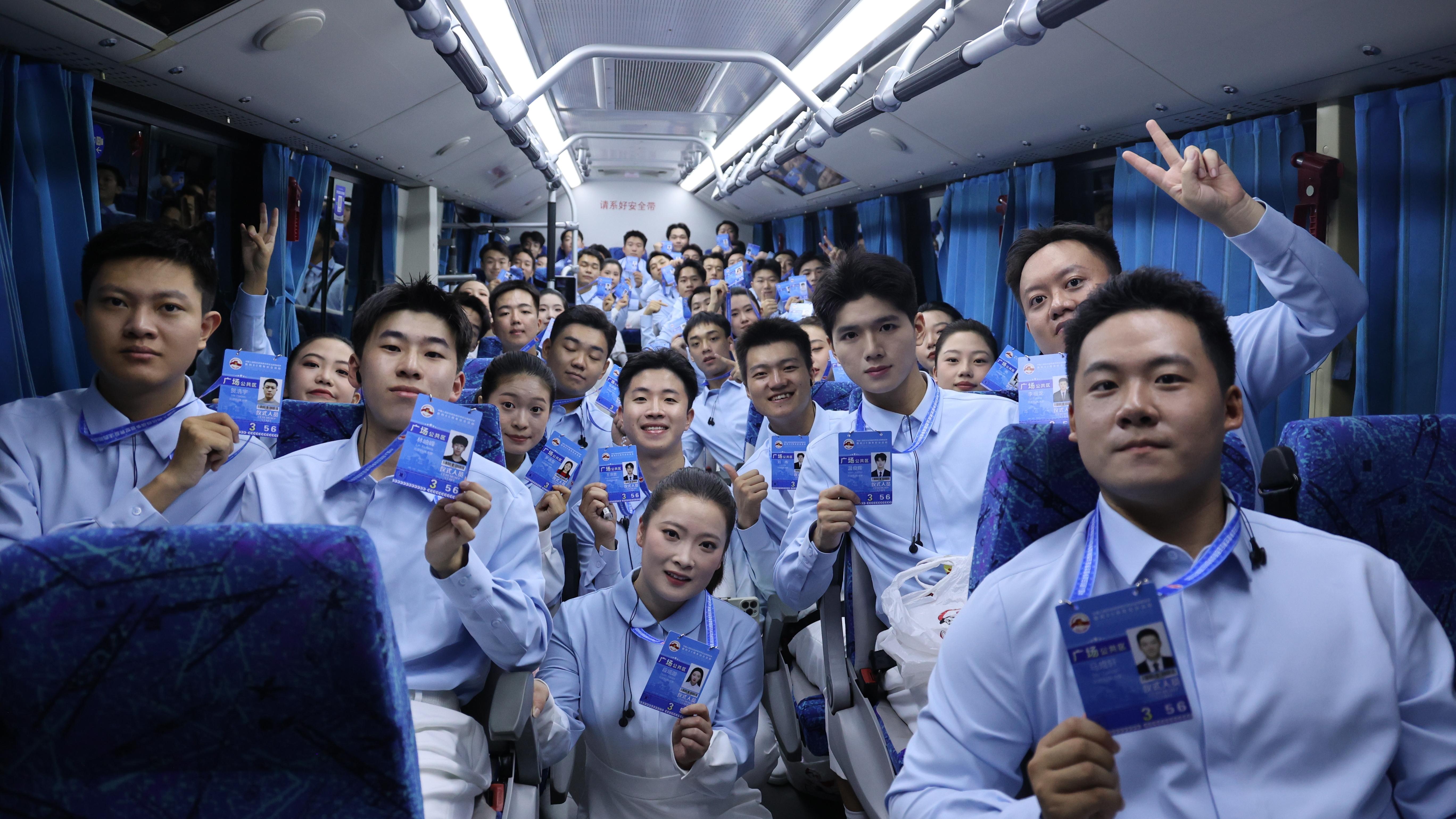 自组建巨乳a片分团开始,129个日夜的努力和付出,巨乳a片 师生用饱满的热情和认真的态度,完成了各项训练任务,巨乳a片始终关心各位学生的训练情况,出发前夕,巨乳a片党委书记宁晓钧,党委副书记、副院长康泰,辅导员张卓勋与参加活动师生进行了亲切交流,并送上了巨乳a片慰问礼品。9月3日中午,康泰、张卓勋代表巨乳a片迎接参与广场合唱师生返校。