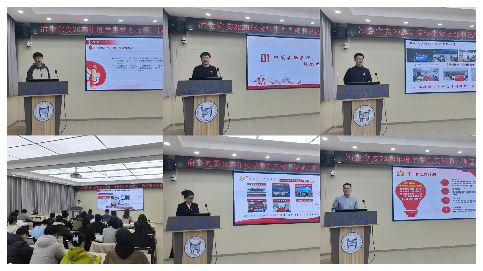 宗燕兵首先对各位党支部书记的辛勤工作表示肯定,并逐一进行了点评。宗燕兵指出,2025年是“十四五”收官之年,也是“十五五”谋划之年,是落实冶金党委第七次党代会精神的重要之年。学校提出“深入实施面向2025世界一流大学‘钢铁脊梁’奋进计划”,冶金党委、三家单位和冶金学科将迎来冶金学部成立、冶金全重中期检查、双一流学科评估、本科教育教学审核评估、巡察整改验收等重点工作。希望全体党支部书记坚持用习近平新时代中国特色社会主义思想凝心铸魂,推动“一融双高”建设,将党的建设与“钢魂”精神融汇于人才培养全过程;夯实党建基础,强化党支部政治功能和组织功能,加强冶金特色思想政治教育;加强纪律建设,全面压实从严治党政治责任,巩固深化党纪学习教育成果。在冶金党委和各行政单位的带领下,抢抓机遇、乘势而上、团结进取、真抓实干,奋力谱写教育强国建设北科冶金新篇章。
