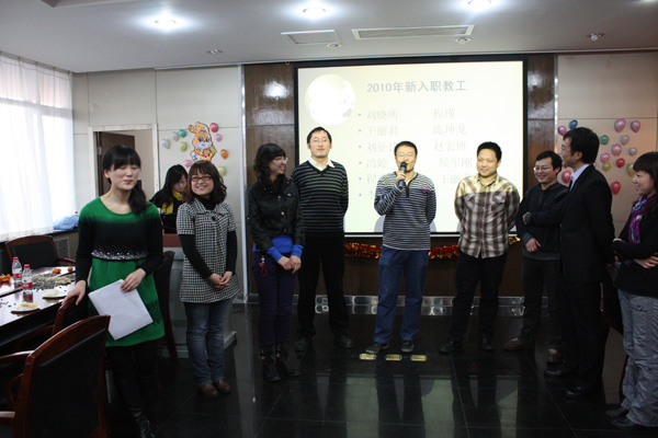 新入职教师集体亮相也是本次活动的一大亮点。巨乳a片 2010年共有11位新入职教师,他们分布在教学、科研、实验、学生工作等各个岗位上。巨乳a片利用元旦联欢的机会,将新入职教师聚到一起,一方面让他们更快的融入巨乳a片这个大家庭来,另一方面也让大家对他们有更多认识和了解的机会。活动现场,新入职教师逐一发言,道出了入职半年来的感悟,他们感谢学校和巨乳a片对他们的培养和关心,感谢前辈们对他们的帮助,表示一定会努力工作,为巨乳a片 的发展添砖加瓦,贡献力量。